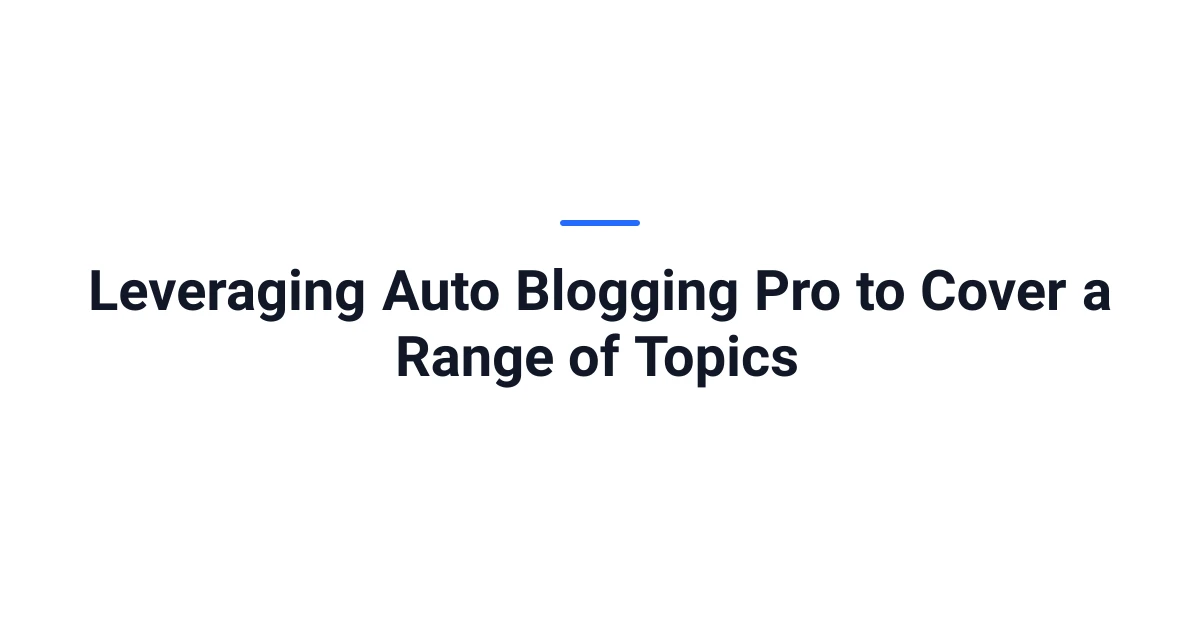 Leveraging Auto Blogging Pro to Cover a Range of Topics