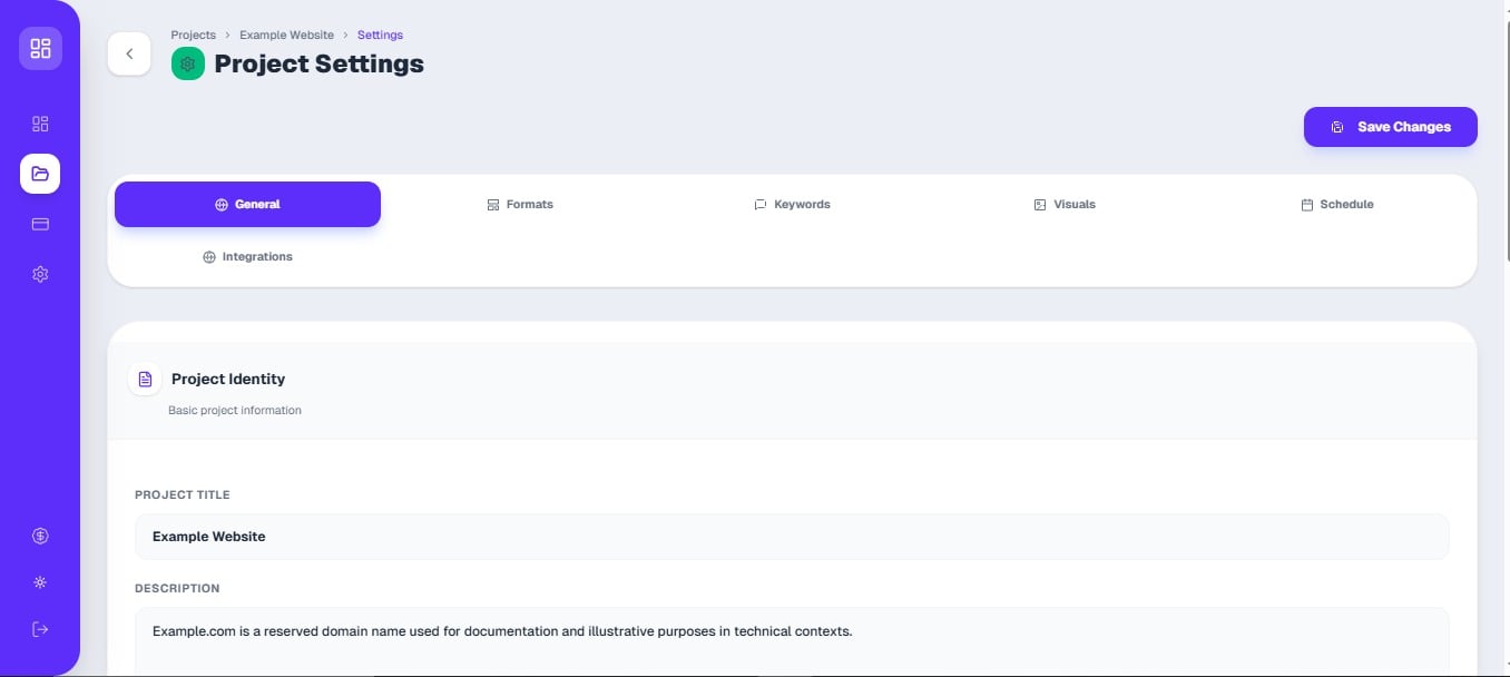 Fine-tune your project settings for optimal content generation.